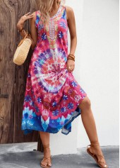 • Blue dresses,Tie Dye dresses,Asymmetry Tie Dye Print Blue H Shape Dress