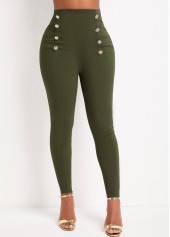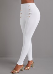 Button Black Skinny Elastic Waist High Waisted Pants