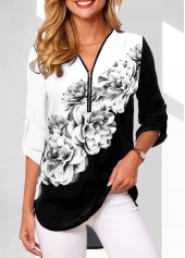 • Blue tops,Ombre tops,ROTITA Blue Quarter Zip Scape Print Blouse